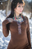 I used the very last of the fawn brown wool jersey for the trim on this ooak. The darker brown, which will be included in a future run btw, is quite a bit stretchier than the fawn if you are familiar with this piece.